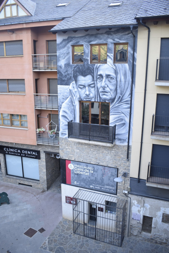 El mural s'ha pintat sobre la Presó-Museu. Foto: Ajuntament de Sort