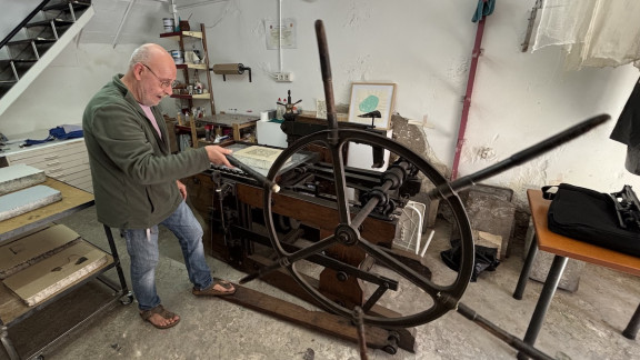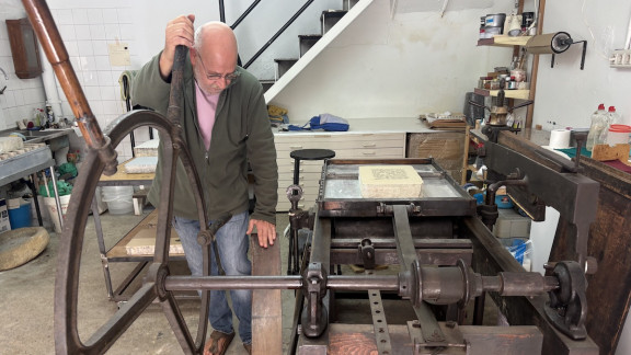 - Sí, la pedra és l'element més important. És ella qui mana, i no et pots barallar amb una pedra. Tens sempre les de perdre. L'artista dibuixa a la pedra i aquesta agafarà o deixarà d'agafar el que ella vulgui. Un cop a l'artista li agrada el que ha creat, la feina del litògraf és, durant l'edició, anar reconduint la situació per tal que la pedra sigui fidel al dibuix que ha fet l'artista. Jo sempre dic que l'has d'anar acaronant, que és una mica com una amant, que has de ser subtil, però l'has d'anar portant al llit, en definitiva.