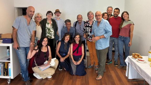 Carles Monegal en la festa sorpresa que alguns artistes li van fer el dia de la seva jubilació. Foto: Cedida