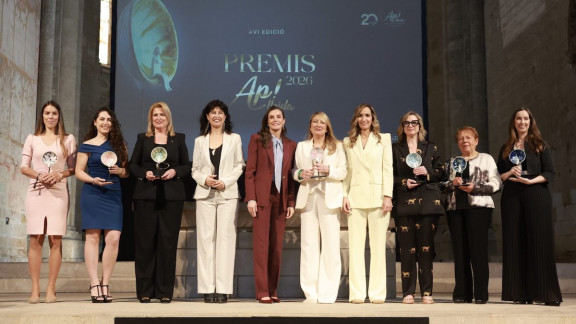 Roser Roca, a la dreta de la imatge, recollint el guardó amb la resta de premiades. Foto: Ap!Lleida