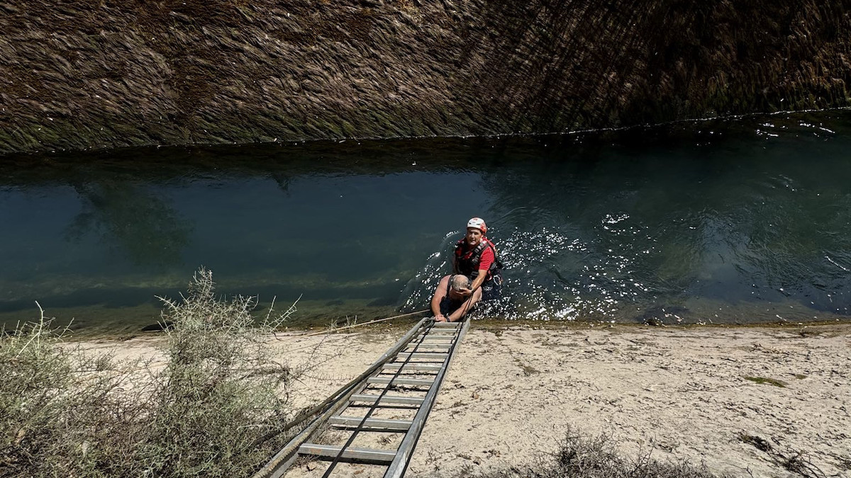 Quan arribem l'home estava agafat a una corda que li havien tirat uns particulars amb què han pogut treure el gos. pic.twitter.com/pMep2dwG5c