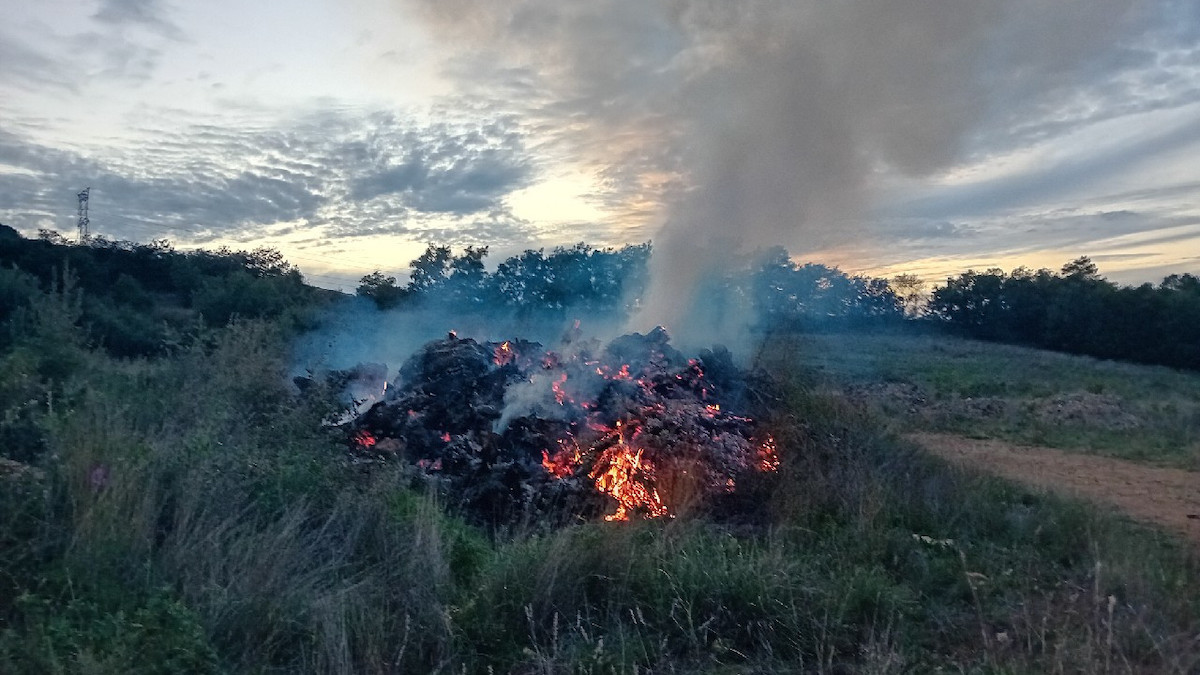 Cremen un munt de troncs al costat d'una camí entre Isona i la Figuerola d'Orcau, a Isona i Conca Dellà (avís 18.57h @112).