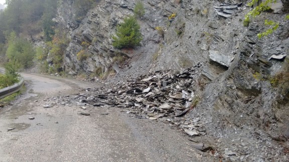 Roques i fang damunt la carretera a Baiasca, aquest matí. Foto: ERC